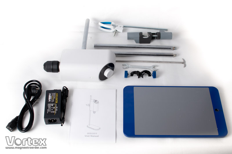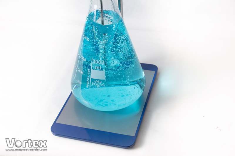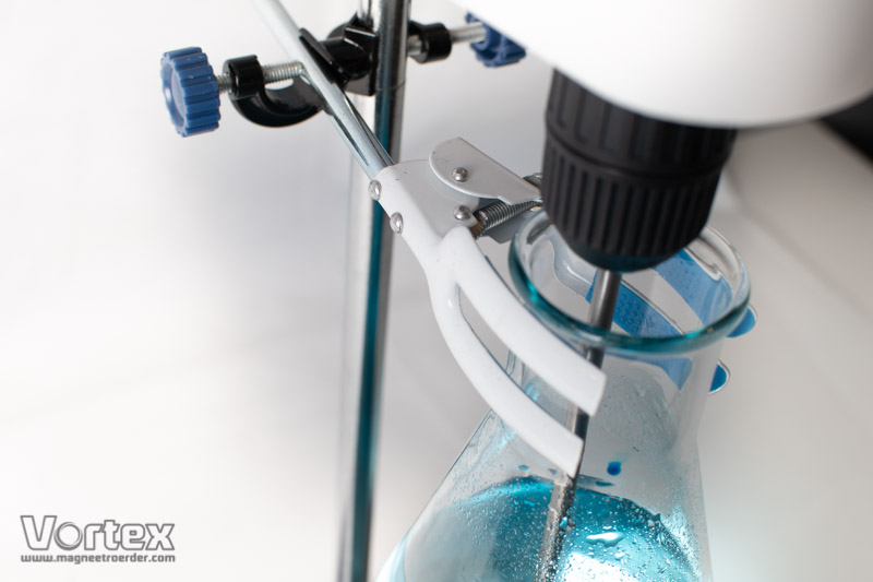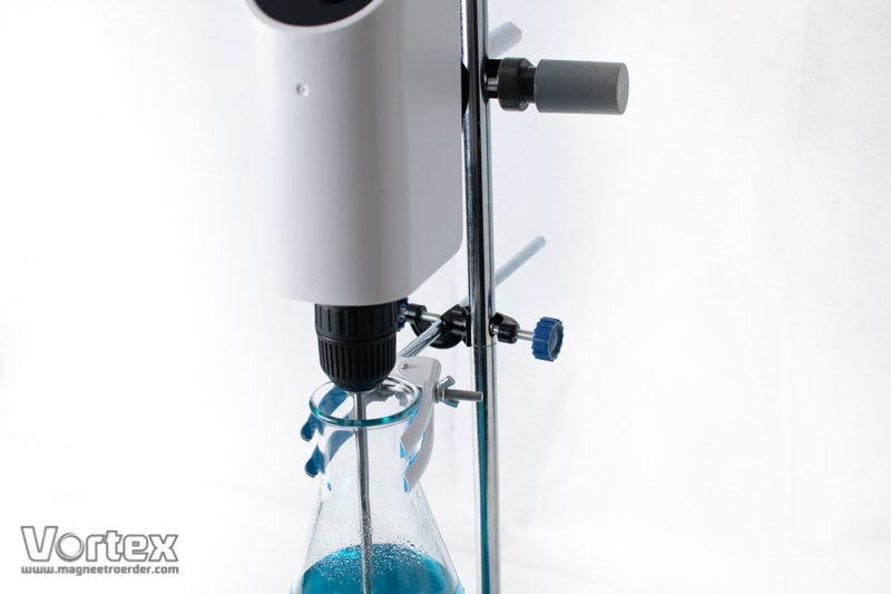 This overhead stirrer kan mix volumes up to 10 liters. This stirrer uses a powerful 80 watt motor. A overhead stirrer is used for larger volumes (in comparison with a magnetic stirplate). Also is it capable to mix very viscous liquids.